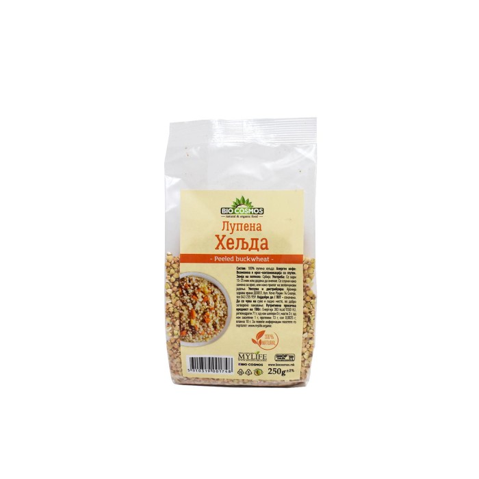 Состав: 100% лупена хељда. Алерген инфо: Возможна е крос-контаминација со глутен. Земја на потекло: Србија. Употреба: Се вари 15-25 мин или додека да омекне. Се служи како замена за ориз, или како прилог на зеленчукови јадења. Увезува и дистрибуира: Аронија здрава храна ДООЕЛ, бул. Кочо Рацин 14 Скопје, тел 043 235 959. Да се чува на суво и ладно место, во добро затворено пакување. Нутритивна просечна вредност на 100г: Енергија 383kcal/1550 КЈ, јагленихидрати 71 г, од кои шеќери 0 г, масти 3 г, од кои заситени 1 г, протеини 13 г, сол 0,0025 г, влакна 10 г.