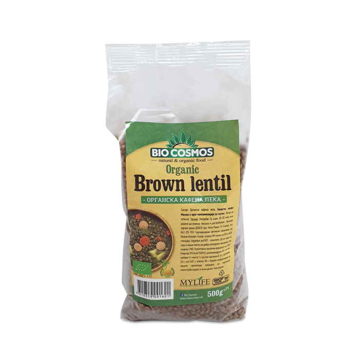 Состав: Органска кафена леќа. Алерген инфо: Можна е крос-контаминација со глутен. Земја на потекло: Турција. Употреба: Се вари 20-30 мин или додека да омекне. Увезува и дистрибуира: Аронија здрава храна ДОО, бул. Кочо Рацин 14 Скопје, тел 043 235 959. Да се чува на суво и ладно место, во добро затворено пакување. Не содржи ГМО. Нутритивна просечна вредност на 100г: Енергија 293 kcal/1000 KJ, јагленихидрати 30 г, од кои шеќери 2 г, масти 1 г, од кои заситени 0,16 г, протеини 26 г, сол 0,01 г, влакна 30 г.