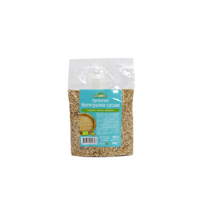 Состав: Органски интегрален сусам. Алерген инфо: Содржи сусам. Можна е крос-контаминација со глутен. Земја на потекло: Парагвај. Употреба: 1-2 лажици на ден, како додаток во салати, јогурт, житарки и сл. Увезува и дистрибуира: Аронија здрава храна ДООЕЛ, бул. Кочо Рацин 14 Скопје, тел 043 235 959. Да се чува на суво и ладно место, во добро затворено пакување. Не содржи ГМО. Нутритивна просечна вредност на 100г: Енергија 594 kcal/2371 КЈ, јагленихидрати 12 г, од кои шеќери 0 г, масти 50 г, од кои заситени 7 г, протеини 18 г, сол 0,03 г, влакна 12 г.