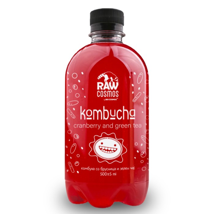 Состав: Комбуха култура, вода, зелен чај, мешан ароматизиран чај (цвет од хибискус, јаболко, кора од портокал, нане, шипка, арома на брусница (6,5%)), шеќер. Не пастеризиран, сиров напиток. Напитокот има продолжена ферментација во шишето, што може да доведе до благо дуење на шишето и/или формирање на мали парчиња габа кои пред употреба може, но не мора да се процедат. Поради процесот на ферментација, комбухата природно содржи алкохол 0,74% по волумен ±0,3%. Дозирање: Една до две чаши на ден. Поради подобрен вкус, се служи претходно изладена. Земја на потекло: Македонија. Произведува и дистрибуира: Аронија здрава храна ДООЕЛ, бул. Кочо Рацин 14 Скопје, тел 043 235 959.Најдобро до/ЛОТ-означено на амбалажата.Да се чува на ладно место (под 25⁰С). После отворањето да се чува во ладилник.