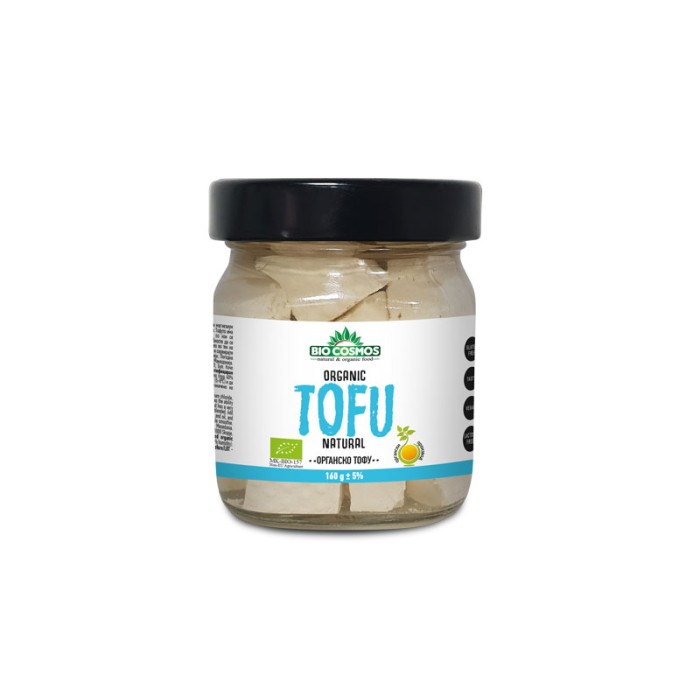 Состав: Органско тофу (органскo соино млеко, природен магнезиум хлорид, вода), вода. Алерген инфо: Содржи соја. Употреба: Тофуто има способност да апсорбира вкусови од останатите состојки со кои се комбинира, и има многу разновидна примена поради способноста да се пече, пржи, вари и блендира. Додадете го во супа или вариво во тек на готвењето, или кратко пржете го со природен соја сос и масло, и сервирајте го како прилог. Блендирајте го во овошен или зеленчуков шејк. Погодна замена за фета или друго бело сирење. Потекло: Македонија. Произведува и дистрибуира: Аронија здрава храна ДООЕЛ, Бул. Кочо Рацин 14, 1000 Скопје, тел 043 235 959, 078 211 557. Сертифициран органски производ. Да се чува на ладно (под 25⁰C) и суво (под 60% влажност) место. После отворањето да се чува во во ладилник (5-8⁰C) и да се искористи во рок од 3 дена. Најдобро до/ЛОТ-означено на амбалажата. Тежина на тофу во амбалажата: 160 g.