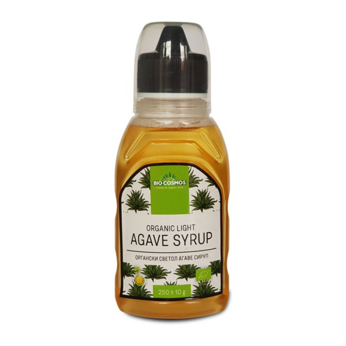 Состав: 100% органски агаве сируп, светол. Потекло на суровината: Мексико. Пакува и дистрибуира: Аронија здрава храна ДООЕЛ, Бул. Кочо Рацин 14, Скопје, тел. 043 235 959, 078 211 557. Не содржи ГМО. Начин на употреба: Како природен засладувач, се дозира по вкус. Да се чува на: Ладно (под 21⁰C) и суво (под 70% влажност) место, во добро затворено пакување. Сертифициран органски производ. Сертифицирано од Балкан Биосерт Скопје, според МК закон за ОЗ и IACB стандард. Најдобро до/ЛОТ-означено на амбалажата.