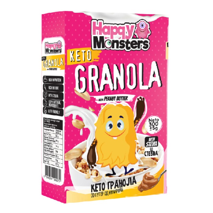Кето гранола со путер од кикирики 300г Happy Monsters