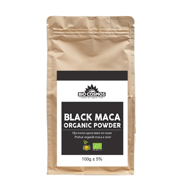 Состав: 100% органска црна мака во прав, сурова. Латинско име: Lepidium meyenii. Потекло на суровината: Перу. Мака е корен сличен на репка која расне на високите Анди, и која локалното население ја користи како храна илјадници години. Црната мака има црна лушпа но белузлав внатрешен дел, па правот кој се добива со нејзино сушење и мелење има жолтеникава боја. Начин на употреба: 1-3 мали лажички на ден, се раствора во вода или друг напиток по желба, може да се додаде во смуди или разни сурови десерти. Увезува и дистрибуира: Аронија здрава храна ДООЕЛ, бул. Кочо Рацин 14 Скопје, тел 043 235 959. Сертифициран органски производ. Сертифицирано од Балкан Биосерт Скопје, според МК занон за ОЗ и IACB стандард. Да се чува на суво и ладно место, во добро затворено пакување. Не содржи ГМО. Нутритивна вредност на 100г: Енергија 357 kcal/1467 KJ, јагленихидрати 61 г, од кои шеќери 25 г, масти 2,5 г, од кои заситени 1,8 г, протеини 11 г, натриум 0,098 г, влакна 5 г.